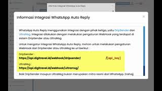 pintegrasi whatsapp auto reply dengan provider diperlukan agar auto reply dapat aktif kami menyarankan untuk mengintegrasikan nomor yang tertera pada live chat dengan provider whatsapp senderp panda dapat menambahkan nomor live chat dengan mengikuti panduannbspa hrefhttpserhjlinkucfxg targetblank relnoopenerberikuta adapun untuk auto reply dapatnbspanda integrasikan pada strongmodul manajemen pelangganstrongp h31 pilih menu manajemen pelanggan pada modul manajemen pelanggan gt kemudian pilih whatsapp auto replyh3 pimg srchttpsbb71d2eac085c69b0noswjv 1neoideh storageiinasbtdlns1hmzab7scrgpysertpdsghtcgl5xpwebp altmanajemen pelangganpng x width1024 x height640 p h32 klik informasi integrasi auto replyh3 pimg srchttpsbb71d2eac085c69b0noswjv 1neoideh storagecizrkq4hgmznntdrx0grnxdfesxbl3vk2aivtygtwebp altwaar integrasipng x width1024 x height640 p h33 salin link webhook dripsender gt kemudian buka panel dripsenderh3 pimg srchttpsbb71d2eac085c69b0noswjv 1neoideh storage69arnyt5lsbxyksuygcsjrxt8go1o5x4kauc78cfwebp altintegrasi arpng x width681 x height345 p h34 pada tab info gt salin api key gt kemudian klik tab both3 pimg srchttpsbb71d2eac085c69b0noswjv 1neoideh storagevktv6vgdkozfenttu6auempll0xsbyec5tp5nvmuwebp altapi dripsenderpng x width1024 x height640 p h35 klik view pada tab both3 pimg srchttpsbb71d2eac085c69b0noswjv 1neoideh storageuc8rmck4svsqbmbbkih2qmvrh1gx2sgzansyxsuxwebp altview rule dripsenderpng x width1024 x height640 p h36 klik add new action untuk menambahkan webhookh3 pimg srchttpsbb71d2eac085c69b0noswjv 1neoideh storage7s0c2szqe1sclh6l7lqspmrycfbs7fc2mmuod3ozwebp altnew action dripsenderpng x width1024 x height640 p h37 isikan dengan url webhook dan api key yang sudah disalin gt kemudian simpanh3 pimg srchttpsbb71d2eac085c69b0noswjv 1neoideh storager80qcaucxp6d19cgb29sbsh7dfzre7n5cc8dn9s0webp altwebhook apipng x width1024 x height640 p ul listrongactivitystrong pilih webhookli listrongpost request urlstrongnbspisikan dengan url webhook dan api key yang sudah disalinli ul pnbspp psetelah anda integrasikan dengan provider whatsapp sender anda dapat menambahkan auto reply dengan mengikuti panduannbspa hrefhttpserhjlinkt8rzp targetblank relnoopenerberikutap